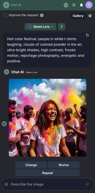 Chat AI provides access to the Qwen Lora neural network via the website, a Telegram chat-bot, and a browser extension.